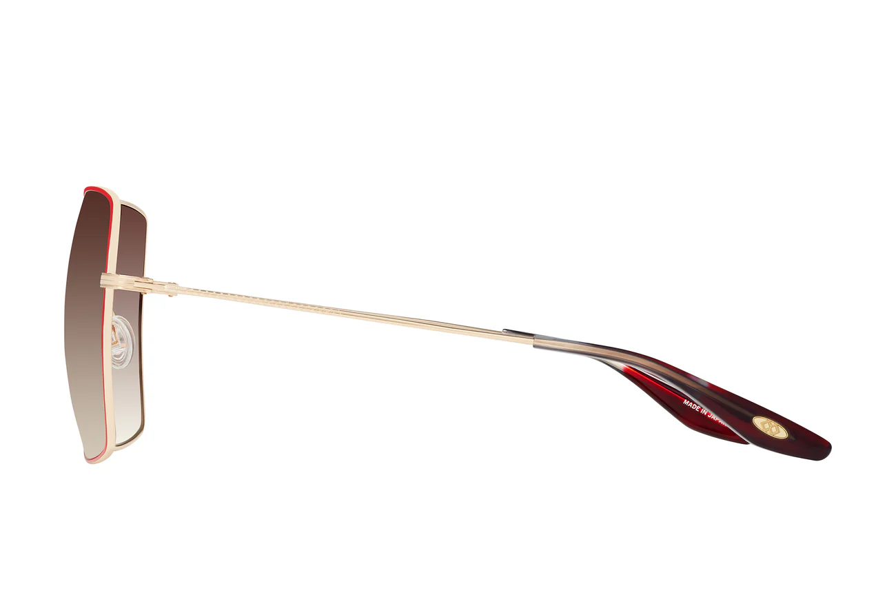 With its ultra-thin and lightweight Japanese titanium, this structured sunglass offers an elevated sense of luxury. Hand painted enamel frames that surround the lenses enhance its elegance. The harmonious blend of intricate metalworking and acetate temples creates a regal and bohemian vibe.