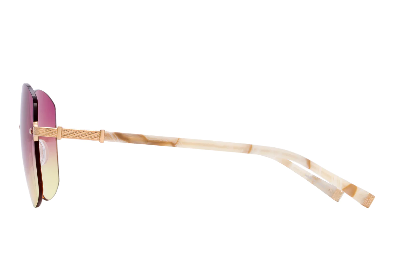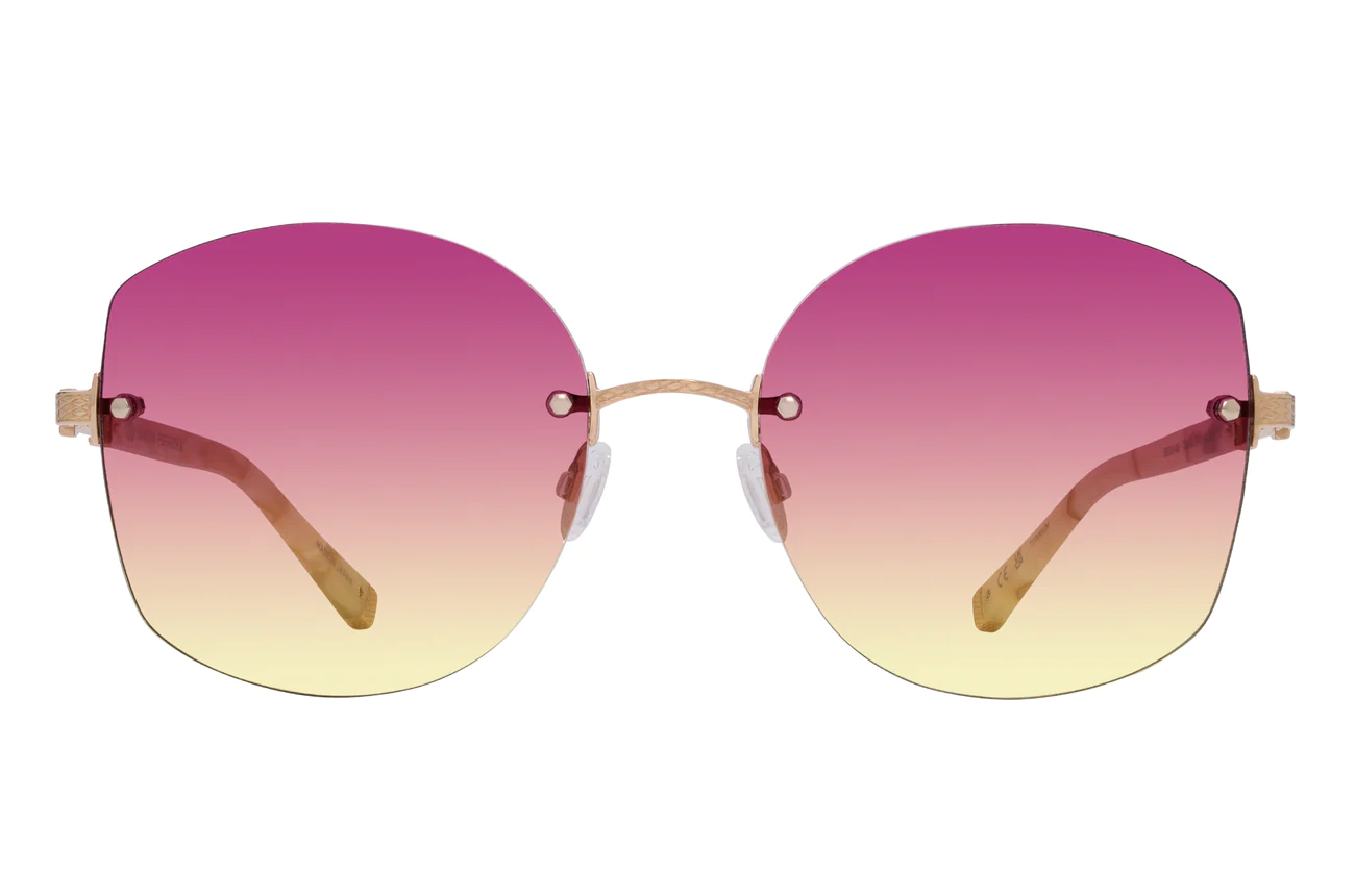 The glamorous Gloria is the oversized style you’ll want to shout about. Shine brightly in sun kissed gradient lenses or turn up the mystery in the Dusk Sunset gradient. Impeccably crafted and adorned with our signature filigree on 24KT gold-plated hardware.