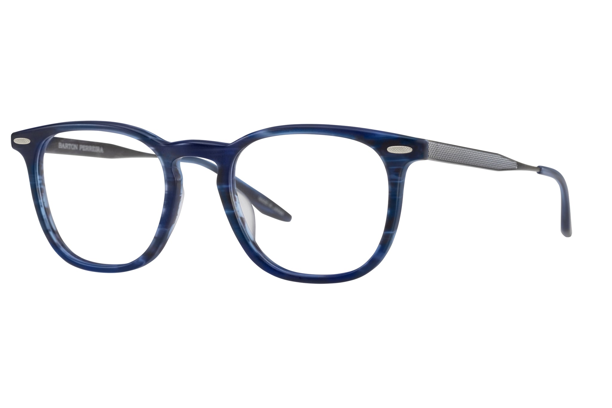 Sleek with a vintage feel, the Husney is an instant classic. Built with a combination of acetate and titanium, the square-shaped silhouette features a keyhole bridge and front plaques with signature grille texture to match the temples.
