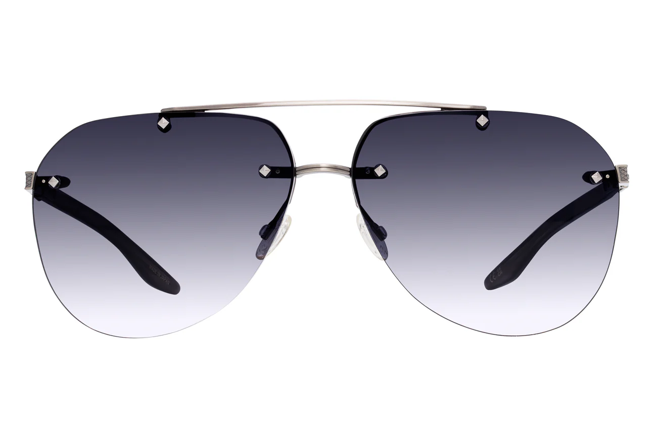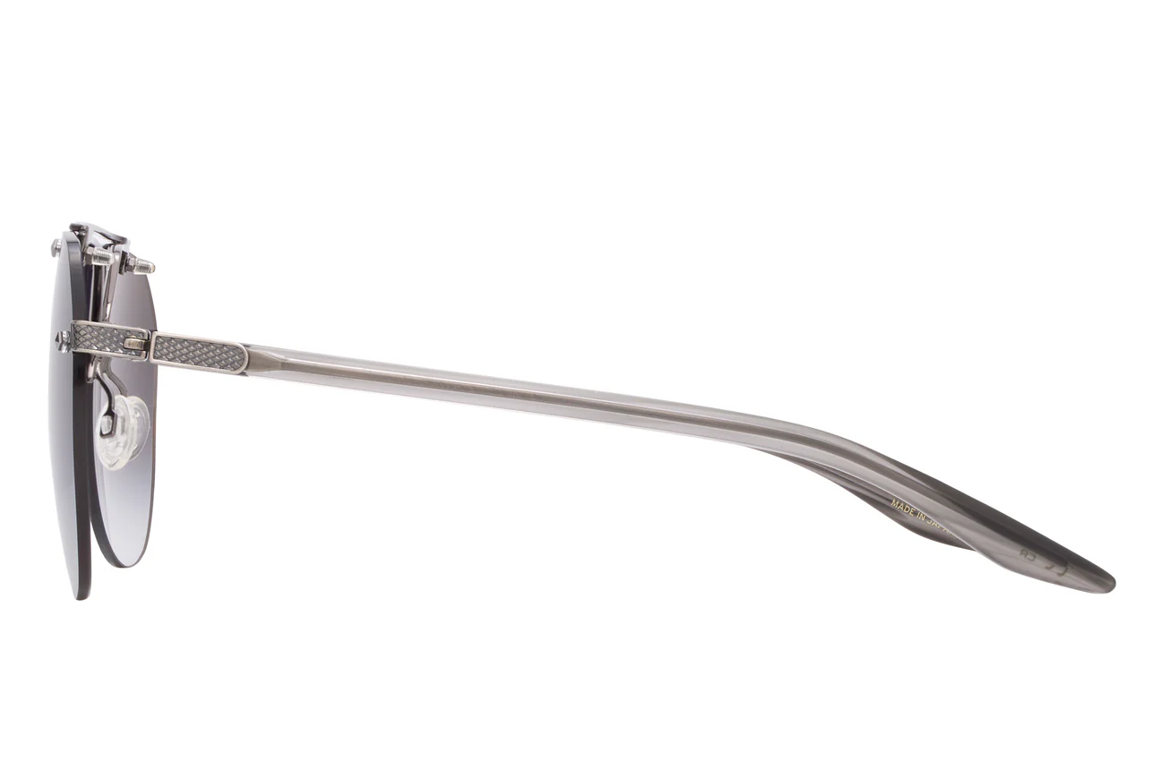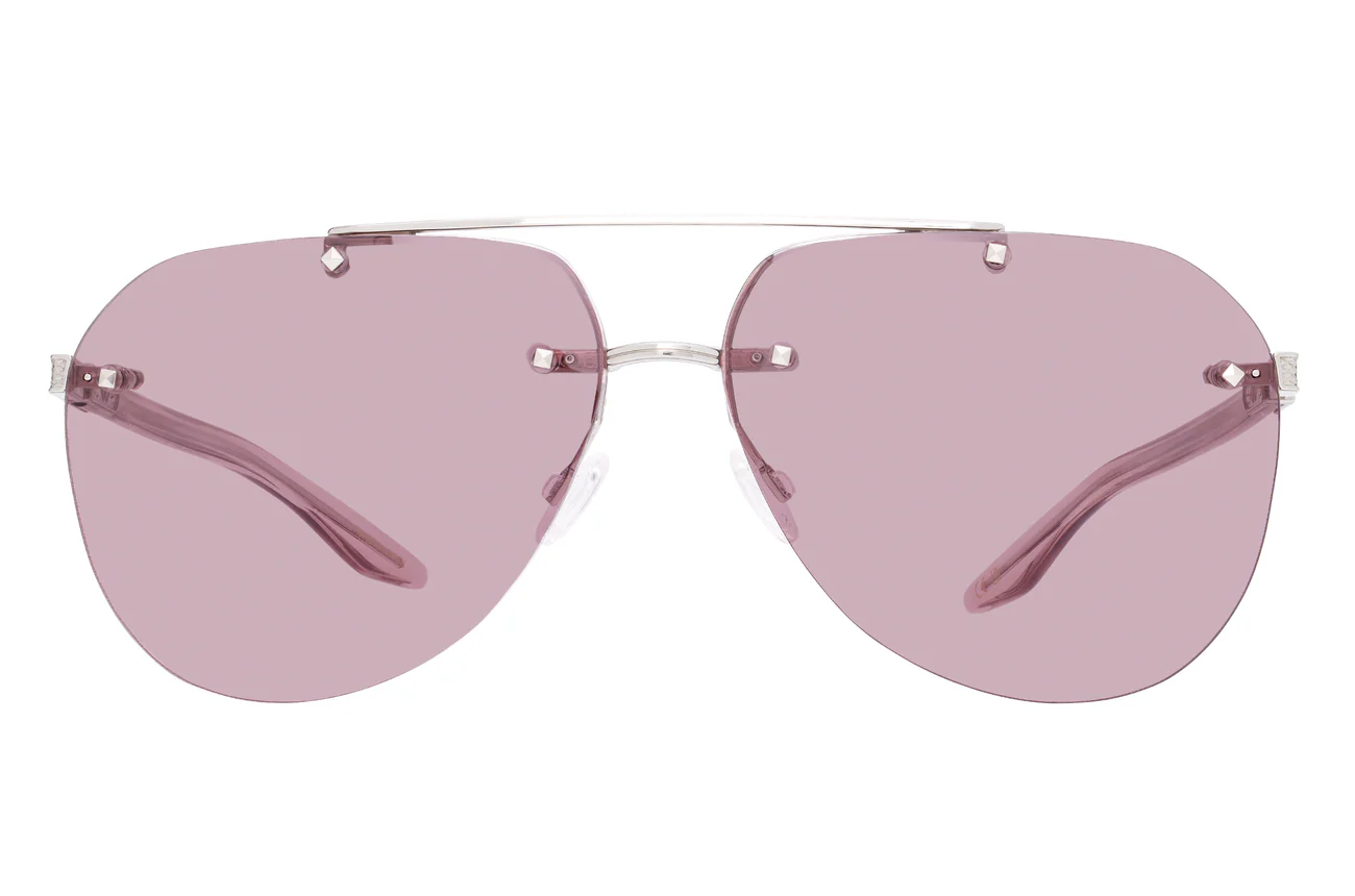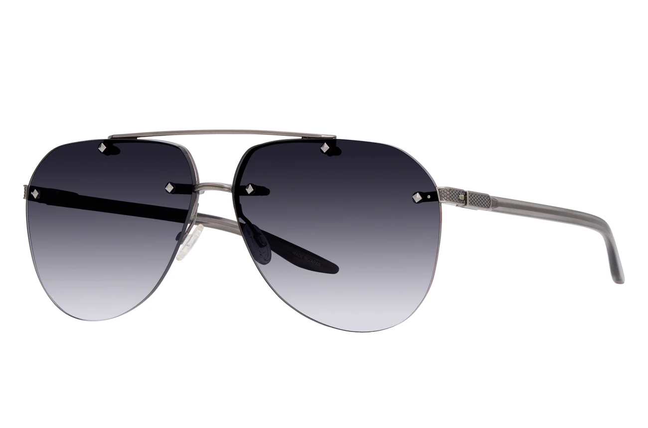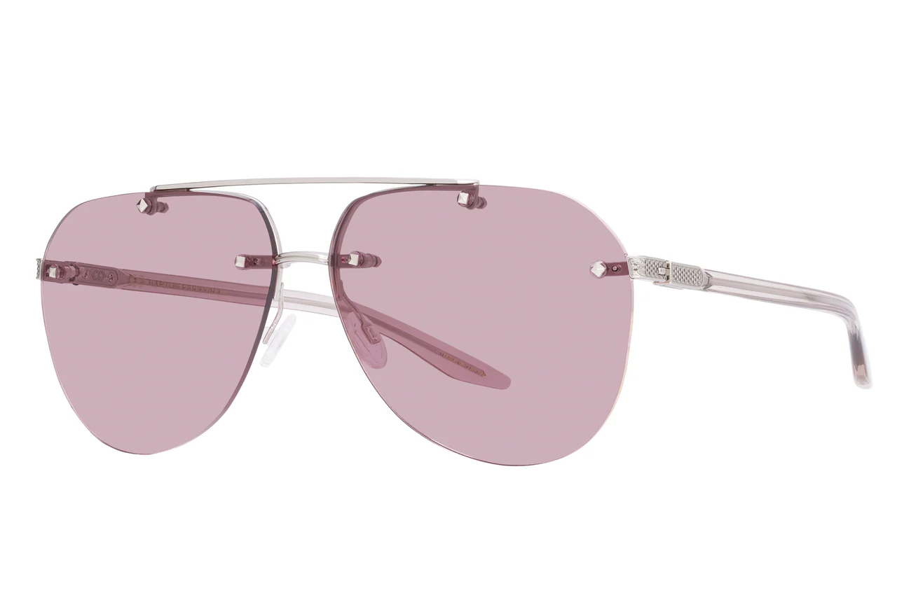 This elevated aviator features sculptural hardware and distinctive filigree details. Custom jewel-tone lens colors and beautifully hand polished acetate temples featuring 24K gold detailing evoke a heightened sense of luxury.