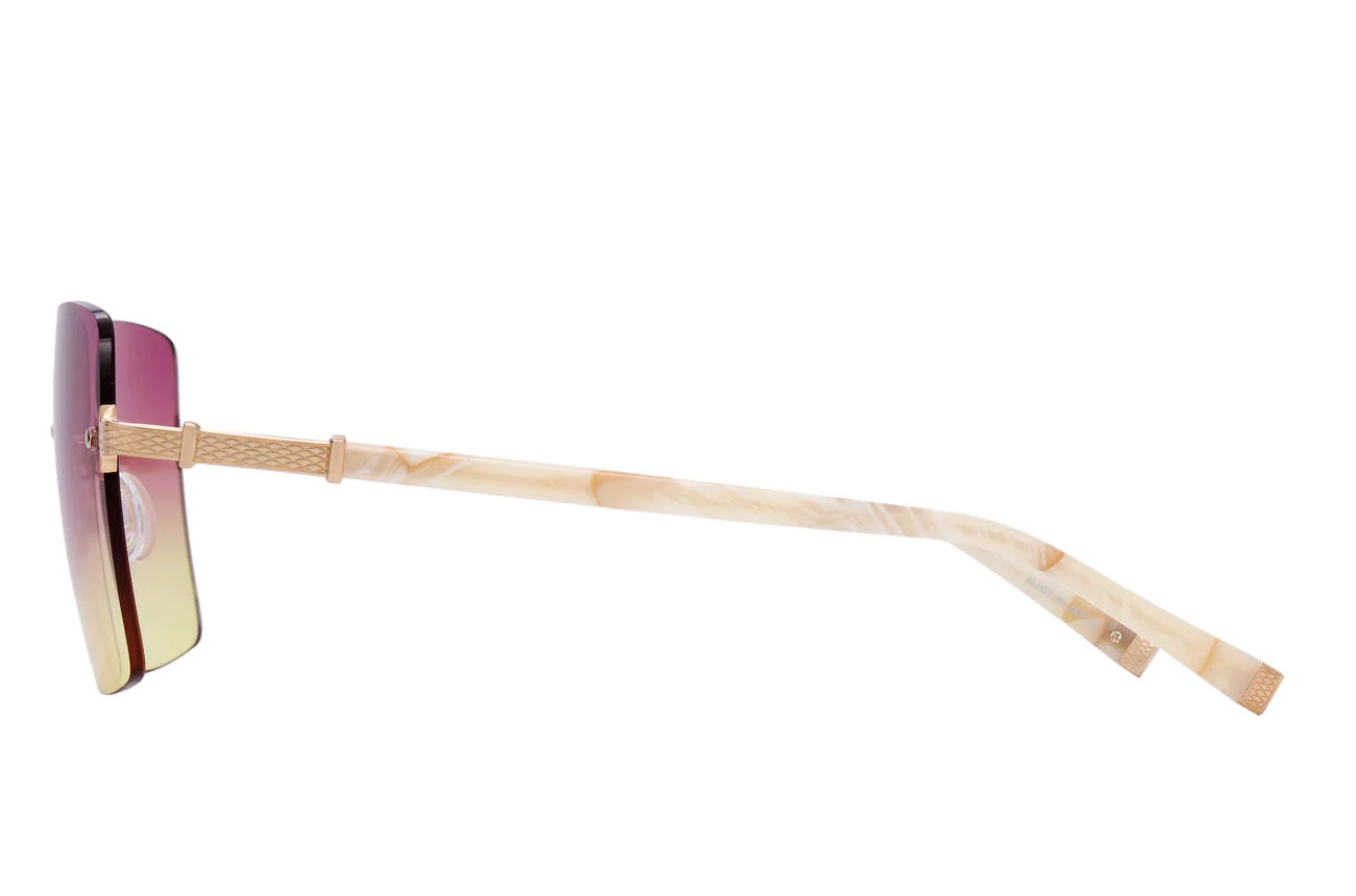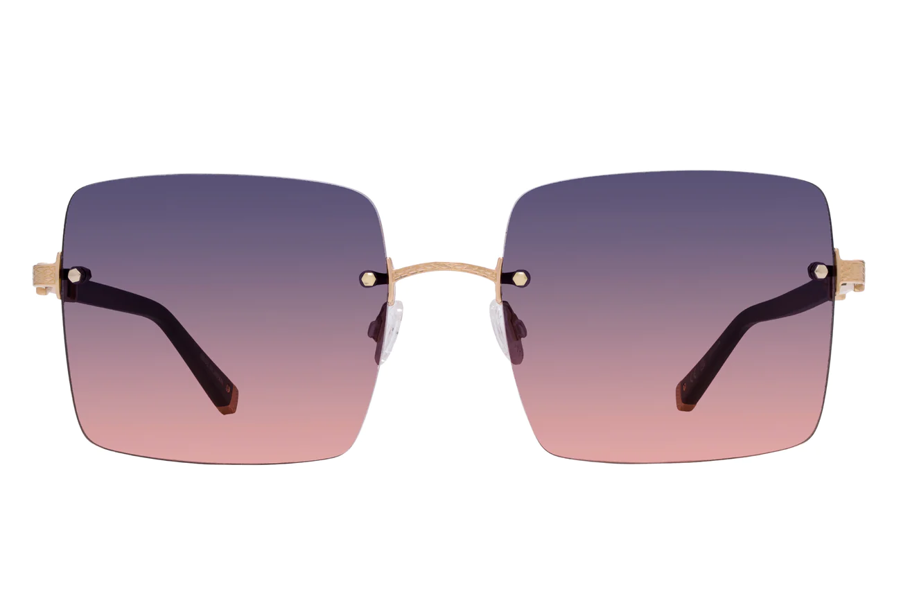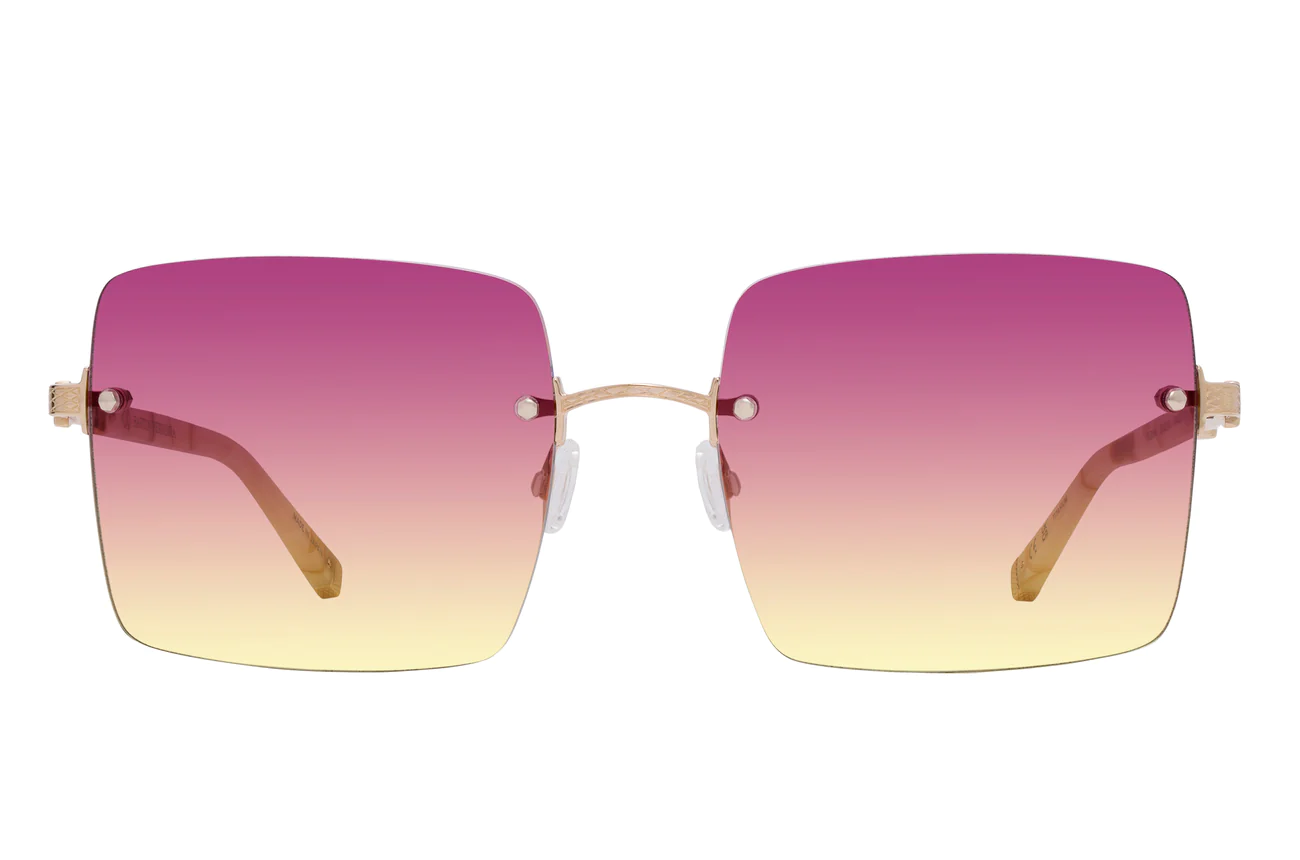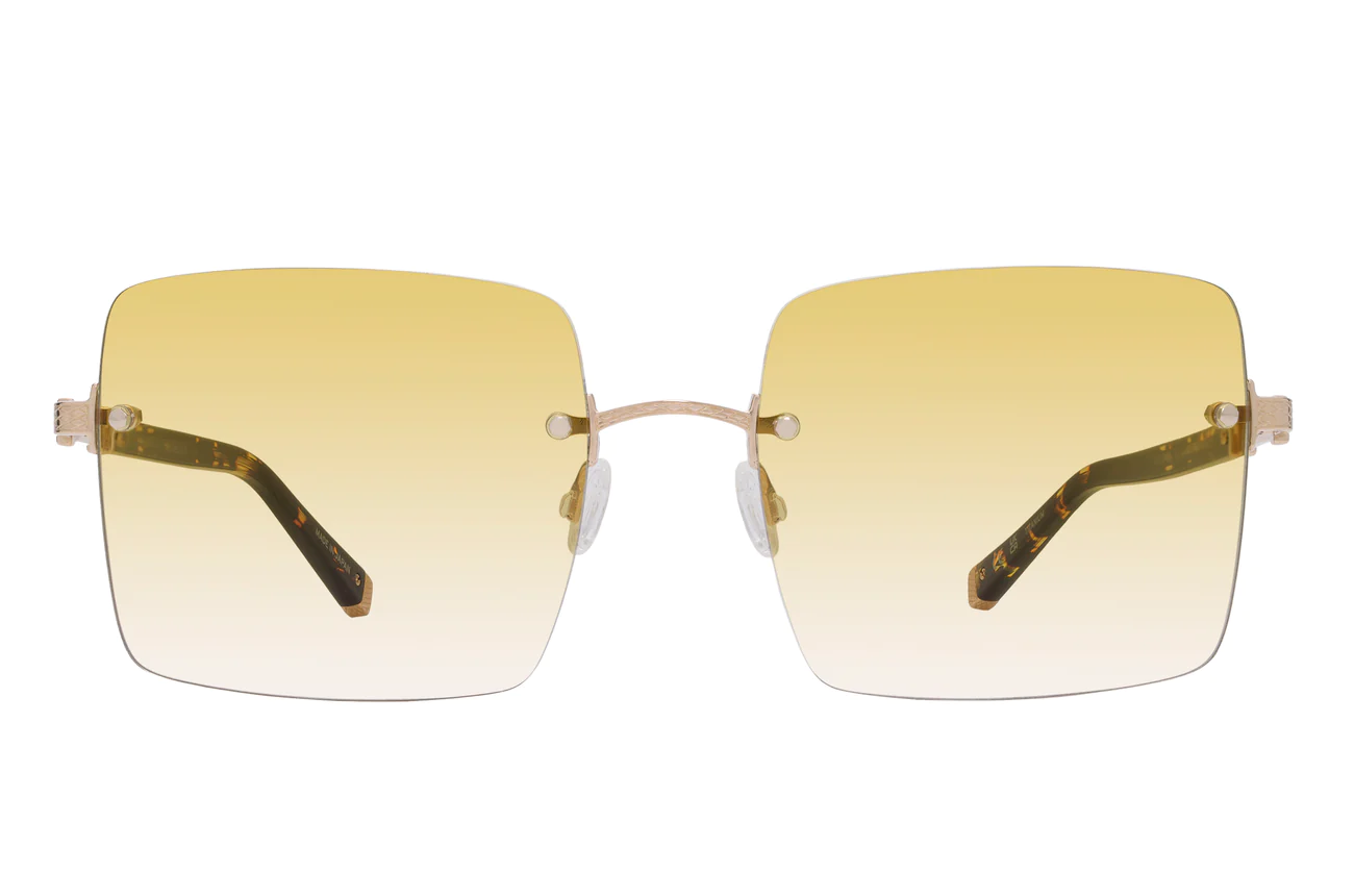 Give this glam oversized square silhouette the green light. Glisten in the Sunshine or Sun Kissed gradient. Impeccably crafted and adorned with our signature filigree on 24KT gold-plated hardware.