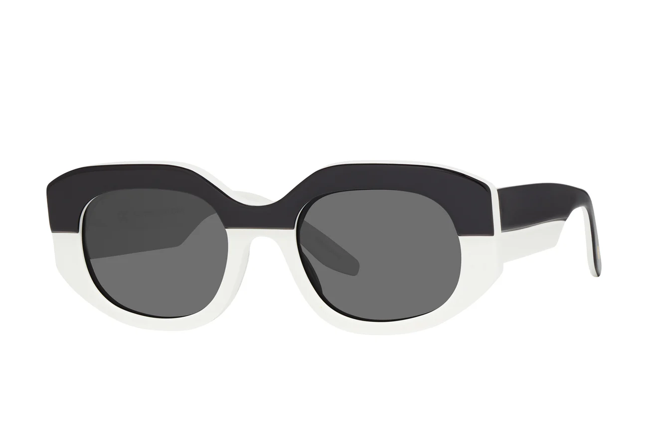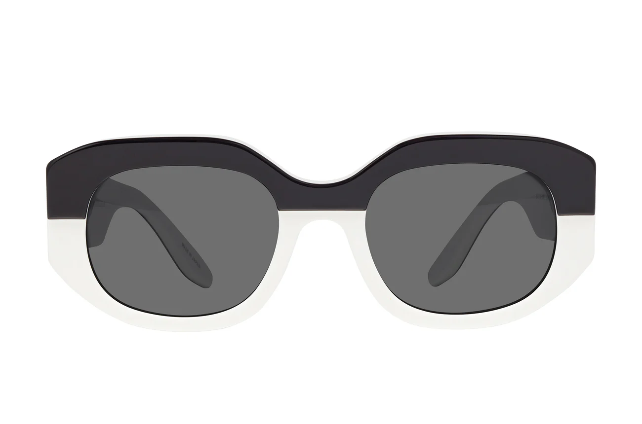 Introducing this dreamy double-laminate sunglass, a testament to meticulous couture craftsmanship. Featuring sleek lines and angles that effortlessly flatter and elevate your style. Inspired by 60โs pop culture, it boasts bold, thick temples that provide a striking contrast to the structured design.