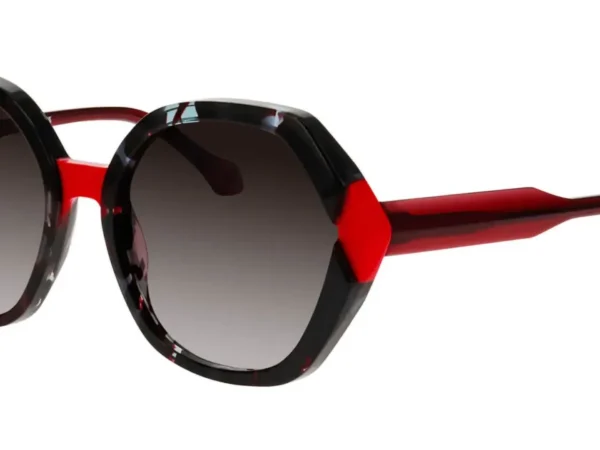 Generous, masculine, these spectacles are both sturdy and sculpted: a solid pin and five-piece hinge make for assertive glasses… you can always rely on them! A geometric stylised design cultivates the opulence of the materials: burnishing reveals the facets and highly carved cut of the glasses. A small and large rectangle with soft but striking shapes reveal the beauty of the exclusive FACE À FACE colours and materials: a deconstructed mosaic in grey is set against orange-red, while the ‘light line’ material is re-imagined on an opaque royal blue giving an extremely stormy spirit. Candour and awe come together in FRANK!