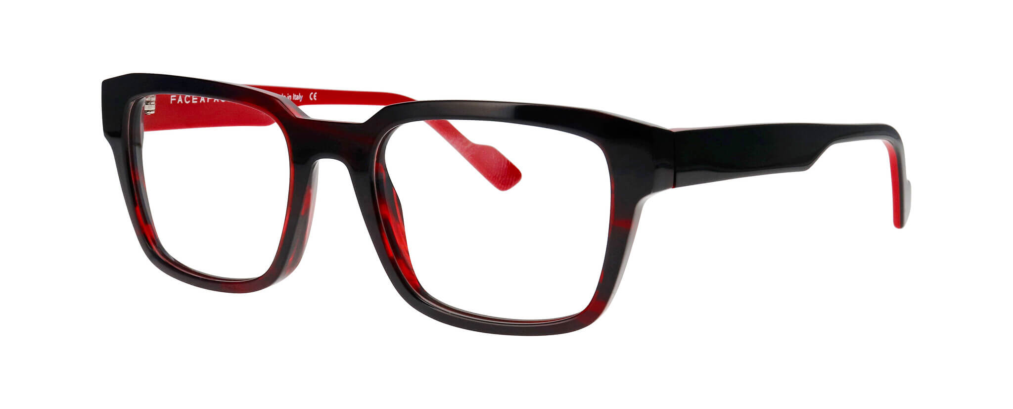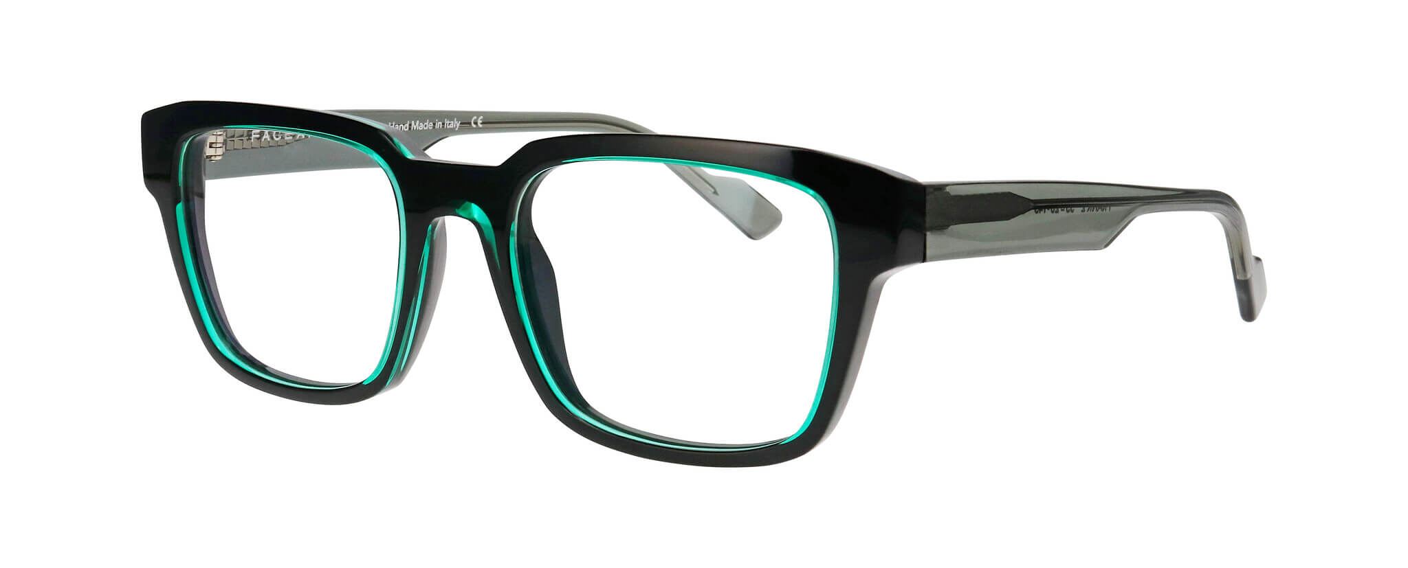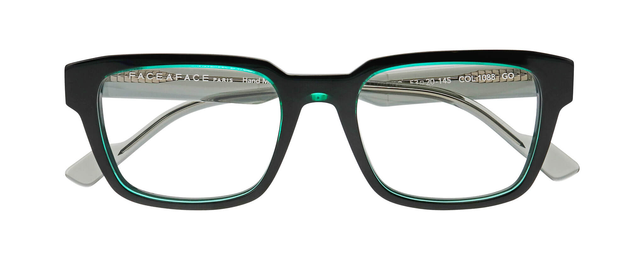 Generous, masculine, these spectacles are both sturdy and sculpted: a solid pin and five-piece hinge make for assertive glasses… you can always rely on them! A geometric stylised design cultivates the opulence of the materials: burnishing reveals the facets and highly carved cut of the glasses. A small and large rectangle with soft but striking shapes reveal the beauty of the exclusive FACE À FACE colours and materials: a deconstructed mosaic in grey is set against orange-red, while the ‘light line’ material is re-imagined on an opaque royal blue giving an extremely stormy spirit. Candour and awe come together in FRANK!