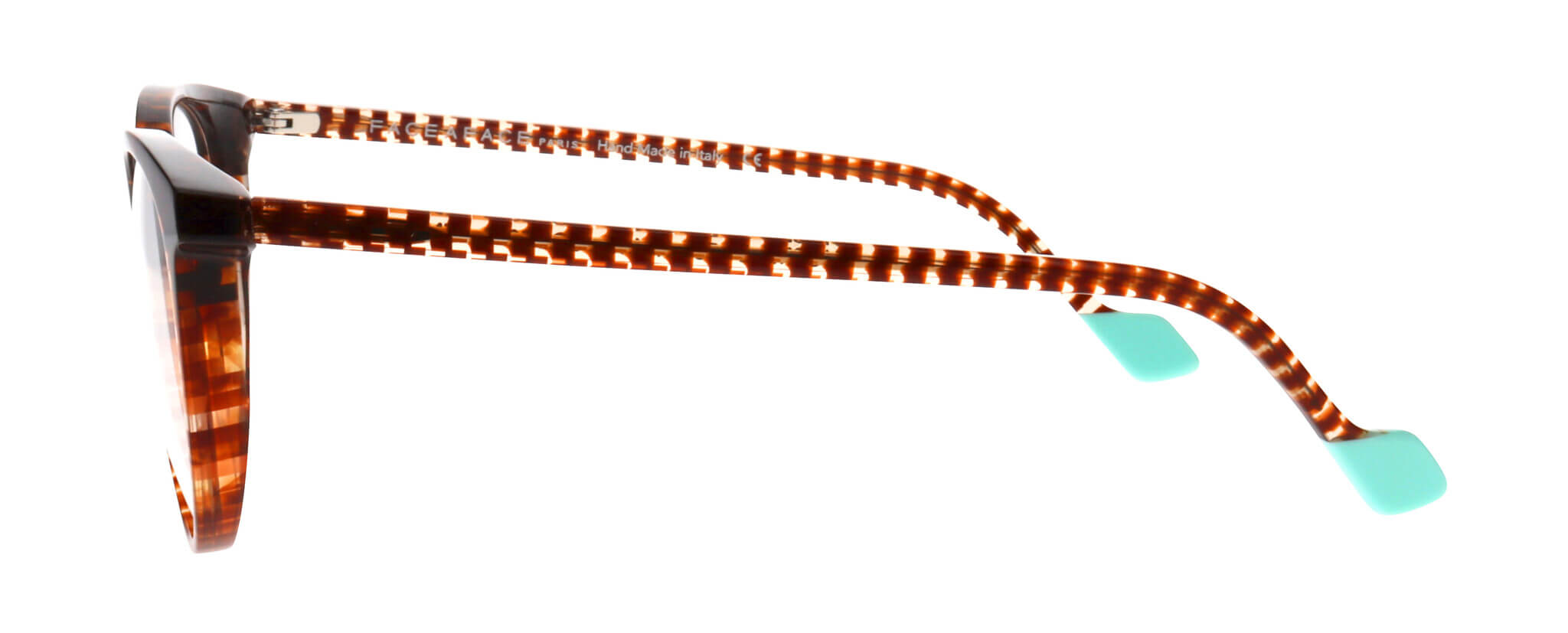 Reinvent simplicity with these two new dimensions of NORMA. Its four distinct models are as refined as dynamic. While seemingly thin, voluminous sides create thickness and substance to mimicking a witty play with punctuation. A fresh and sophisticated colour palette gives light to all the harmonies FACE ร FACE cherishes: dark green and vibrant fuchsia shades meet pixelized tortoise shell shades and a retro-TV-style striped amber, accompanied by splashes of vivid colours on the end of the spatula. Experience NORMA to and enchant life to a new dimension.