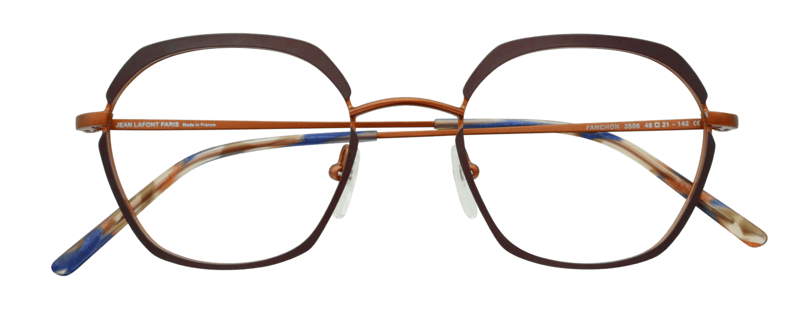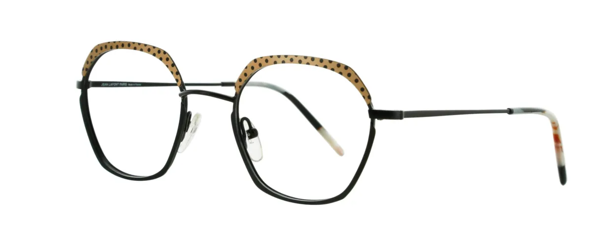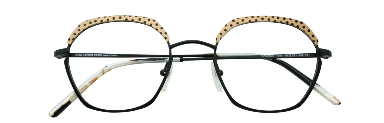 Blending round and square, the hexagonal FANCHON frame pops with vibrant colors and polka-dot accents.