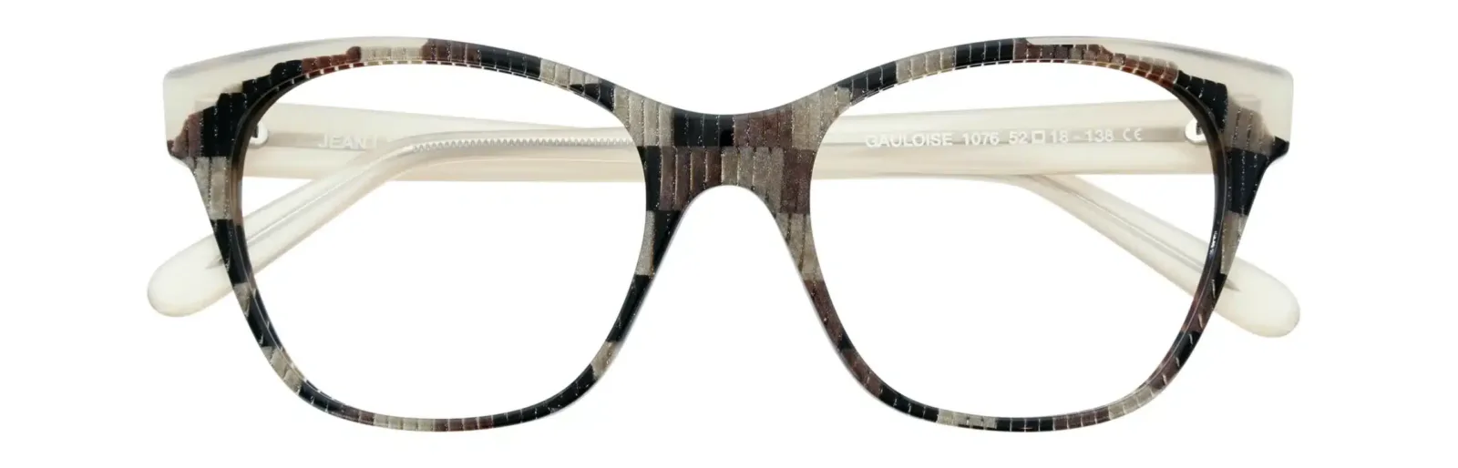 Puzzle piece details play with colorful transparent acetate in the elegant GAULOISE for women.