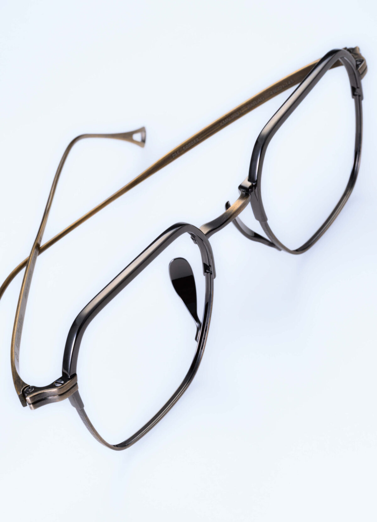 While following the familiar brow-line construction, plastic is deliberately avoided in favor of solid metal, expressed through a sense of mass and precise craftsmanship. Subtle cloisonnรฉ accents and intricate detailing enhance its refined quality and dignified individuality.