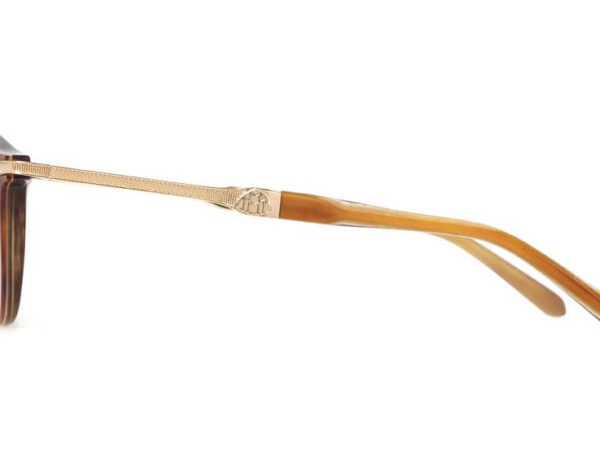 Mellow Gold plated front with Amber Horn temples and Medium Brown gradient lenses