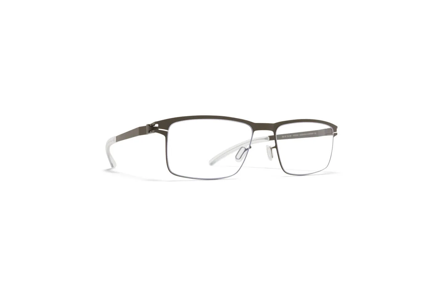 Made of lightweight stainless steel, DENNIS in Camou Green with Clear lenses is a square shaped optical frame from the MYKITA NO1 collection. Handcrafted in Berlin.