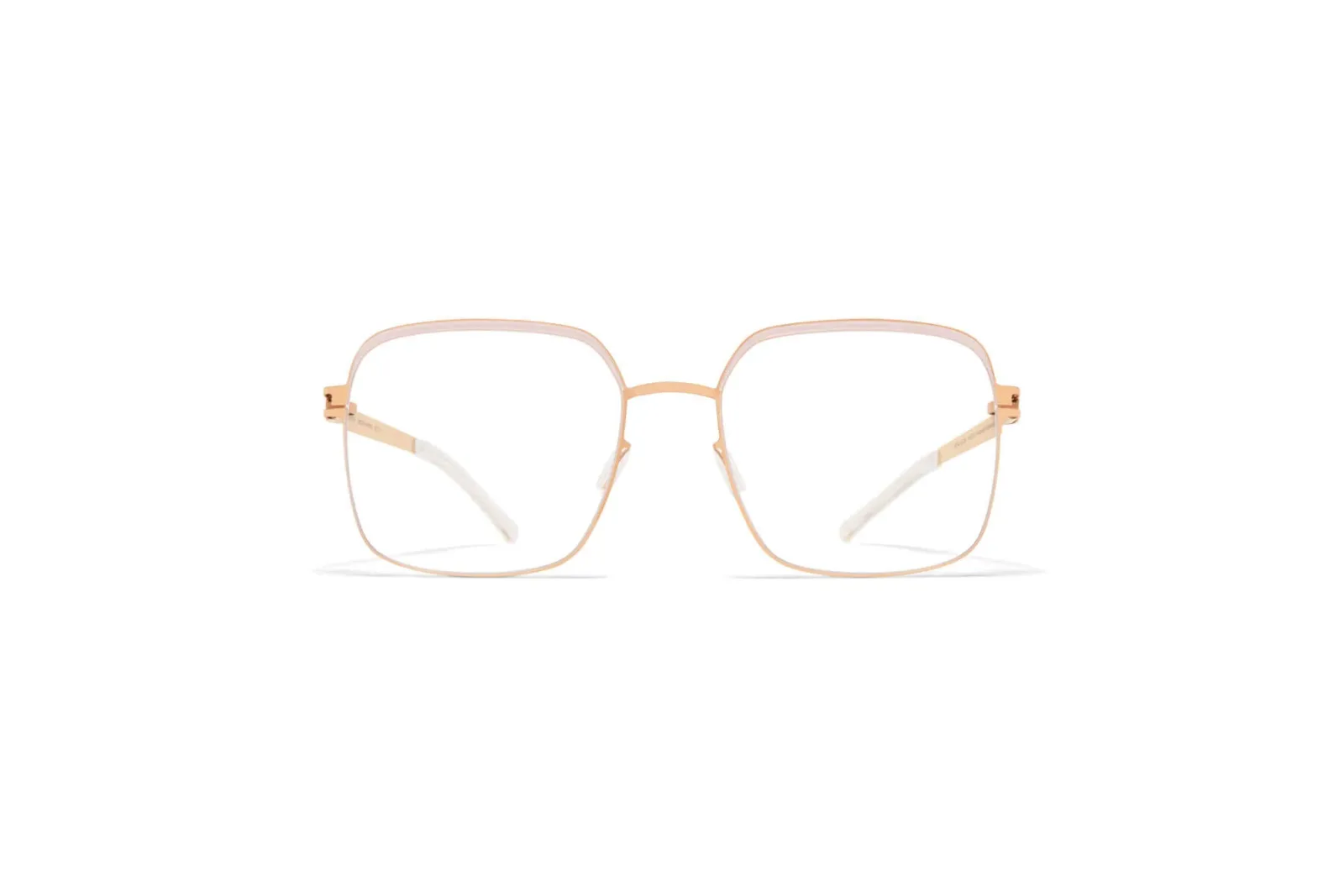 Made of lightweight stainless steel, MERYL in Champagne Gold/Aurore with Clear lenses is a panto shaped optical frame from the MYKITA DECADES collection. Handcrafted in Berlin.