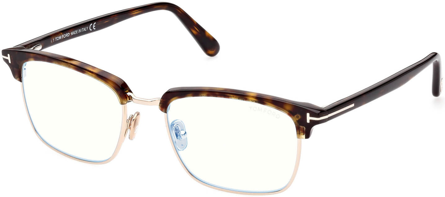 052 - Classic Dark Havana, Shiny Rose Gold, "t" Logo/ Blue Block Lenses