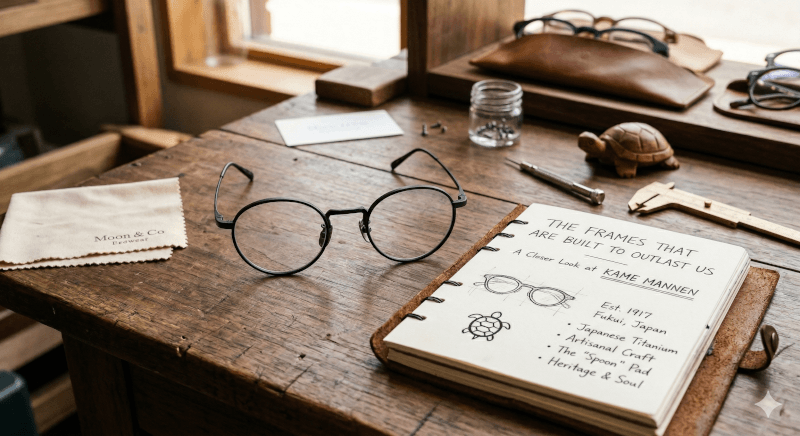 At Moon & Co, we curate brands that have a soul. Kame ManNen fits that perfectly. Their aesthetic is “minimalist-vintage.” They don’t need loud logos or flashy colors. They rely on the glow of high-grade titanium and the perfect silhouette of a round or pantos lens.